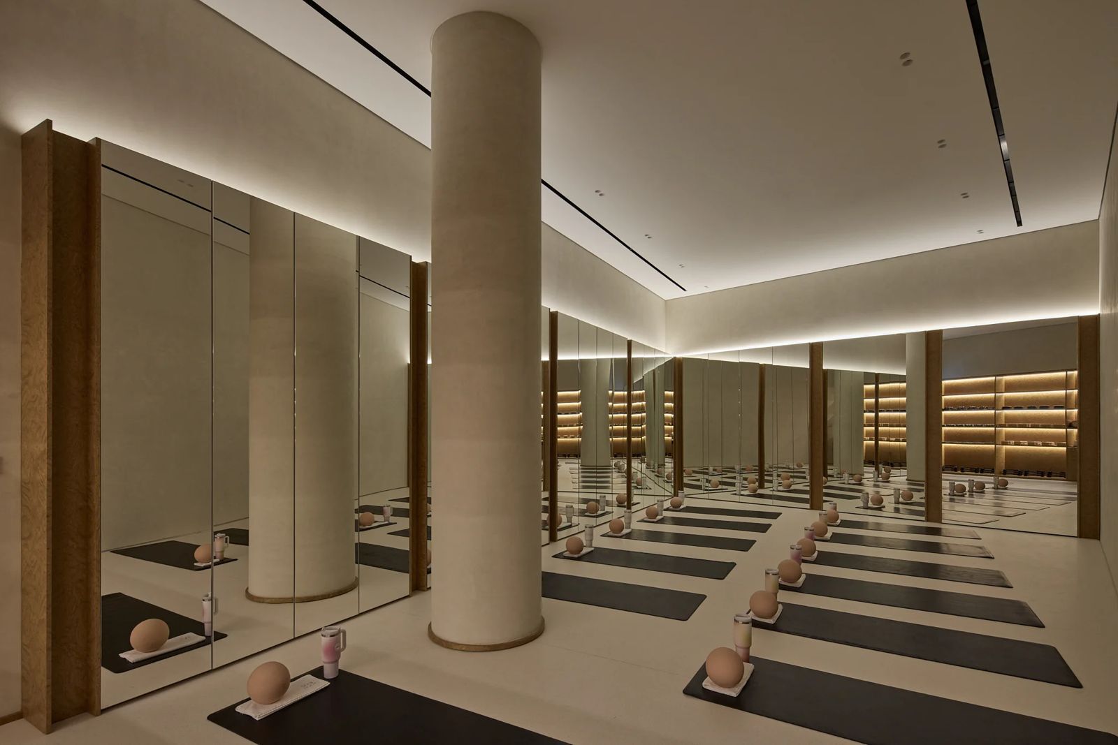 Think marble and mother of pearl counters, bespoke socks and hair accessories styled like a concept store, soft light pouring across textured walls. It feels more gallery than gym. The kind of place you actually want to linger in before and after class.